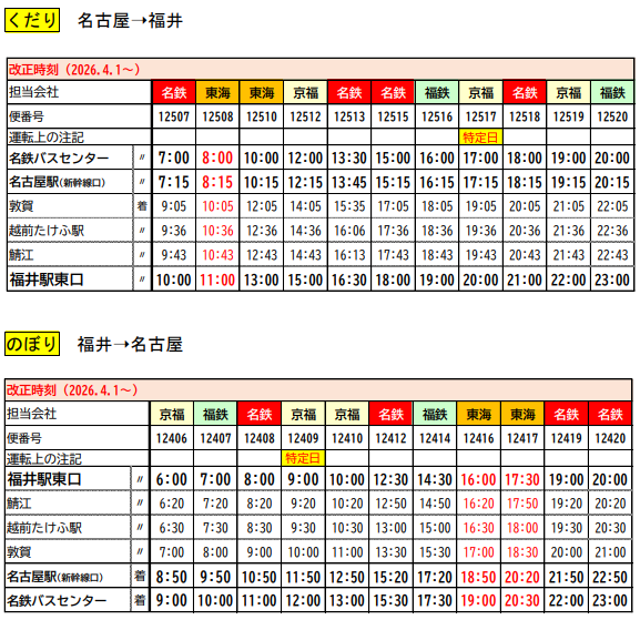 改正情報 北陸道ハイウェイバス福井線のダイヤ改正について